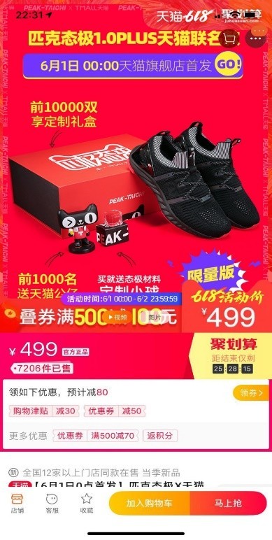以运动品牌匹克为例,6月16日,匹克天猫旗舰店推出了8000双态极x黑衣人联名款限量跑鞋,一天之内近乎售空,匹克单店成交也超1500万,同比去年同期暴增近4300%。据匹克电商总经理沈阳介绍,匹克正是根据聚划算的反馈的信息中,了解到消费者对于设计风格穿着舒适度的偏好,才推出了更加清凉、轻便的鞋款,成就了销售奇迹。