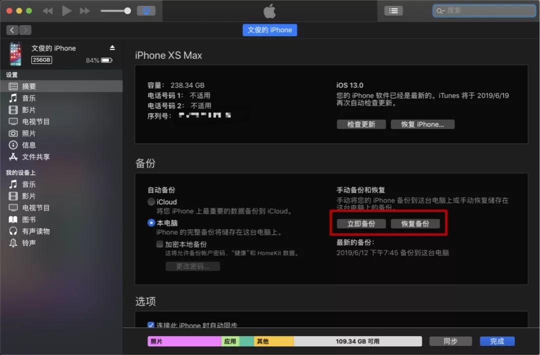 iOS 设备连接 iTunes,并将 iPhone 备份