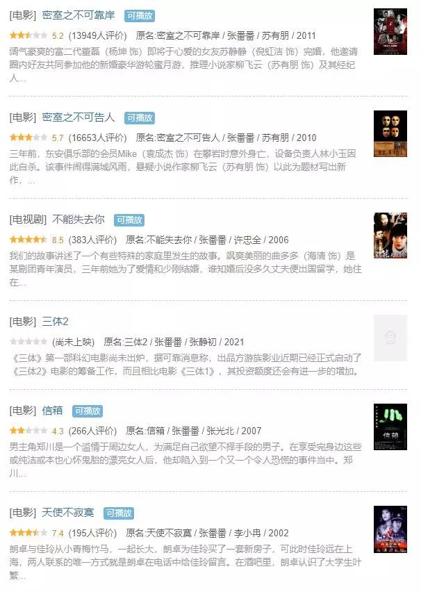 然而,张番番在这之前仅拍过4部电影1部电视剧。不仅题材与科幻无关,豆瓣评分也大多处在及格线以下。