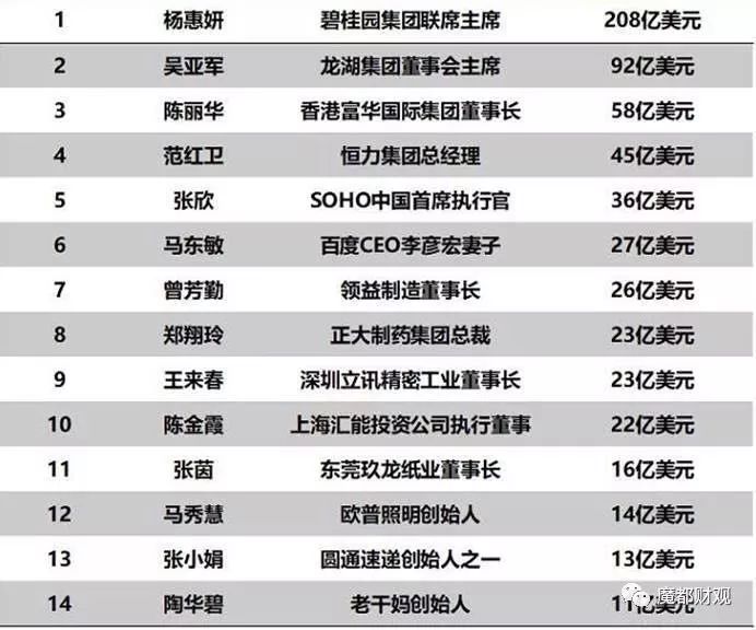 下图是中国女富豪身价榜,大家重点看下他们所在的行业