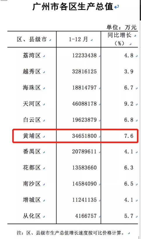 2018年,黄埔GDP为3265亿元,在广州各区中排名第二,增速7.6%,同样排名第二,是仅此于CBD天河区。