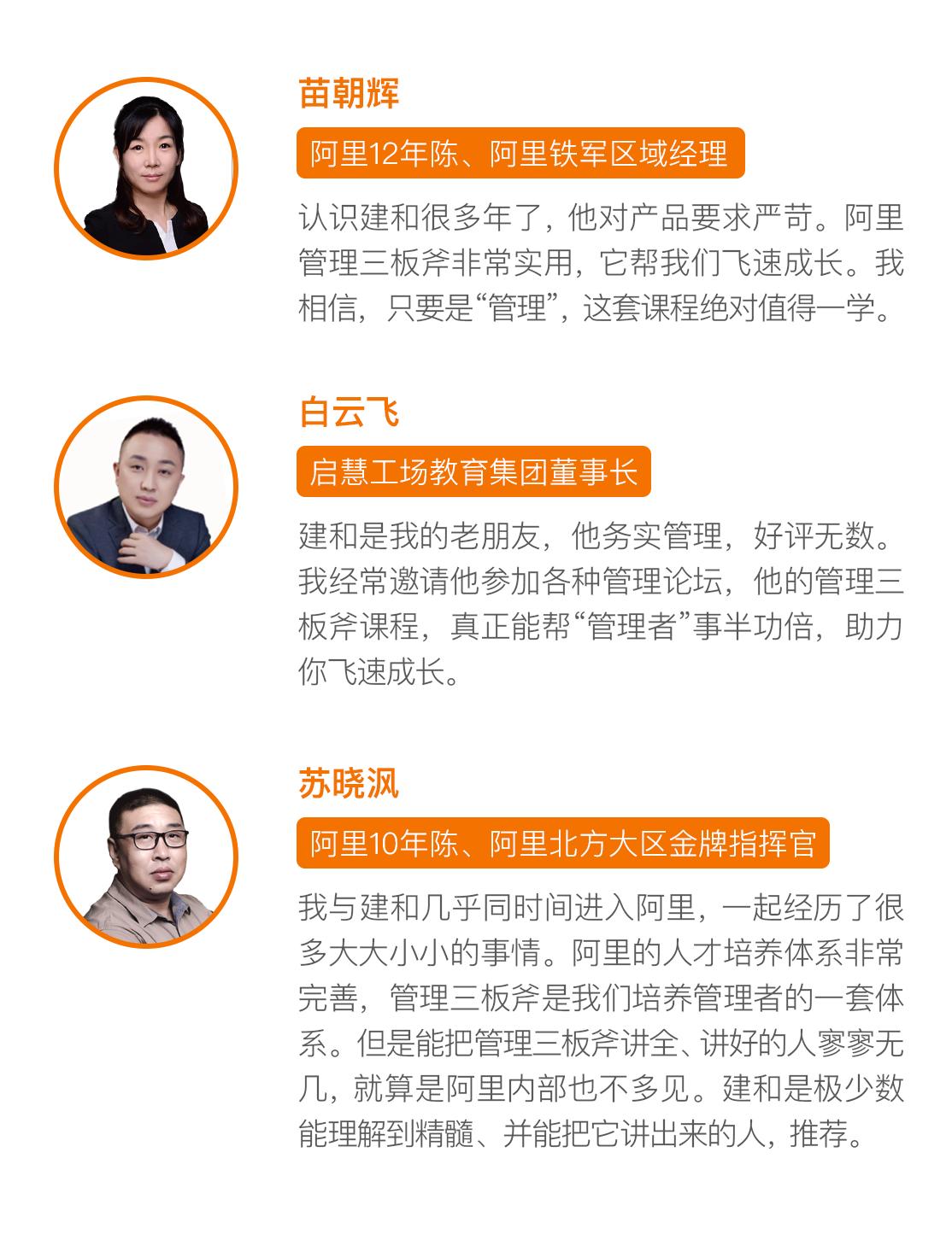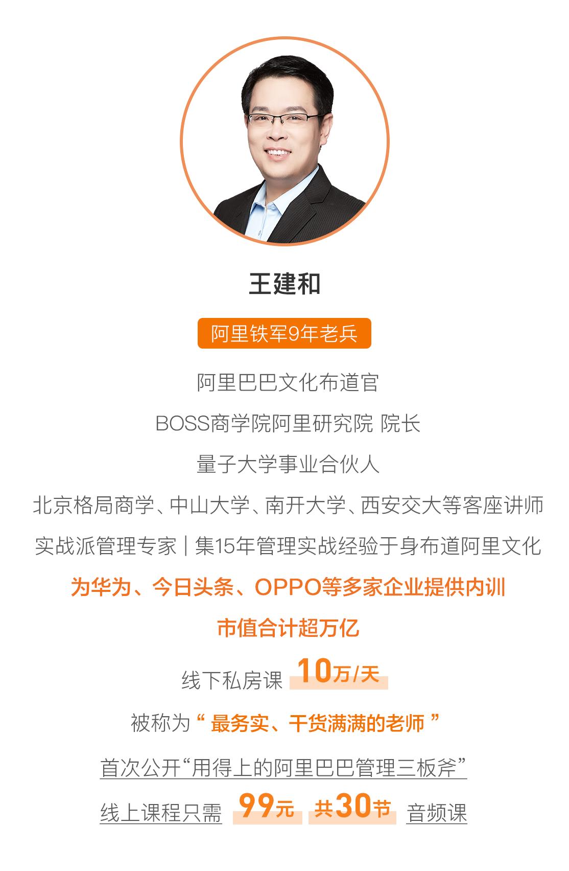 基于这些情况,19年上半年,王建和老师一直在打磨、迭代这一套面向中基层管理者的精品课,现在,这套《用得上的阿里管理三板斧》课程,终于出炉。