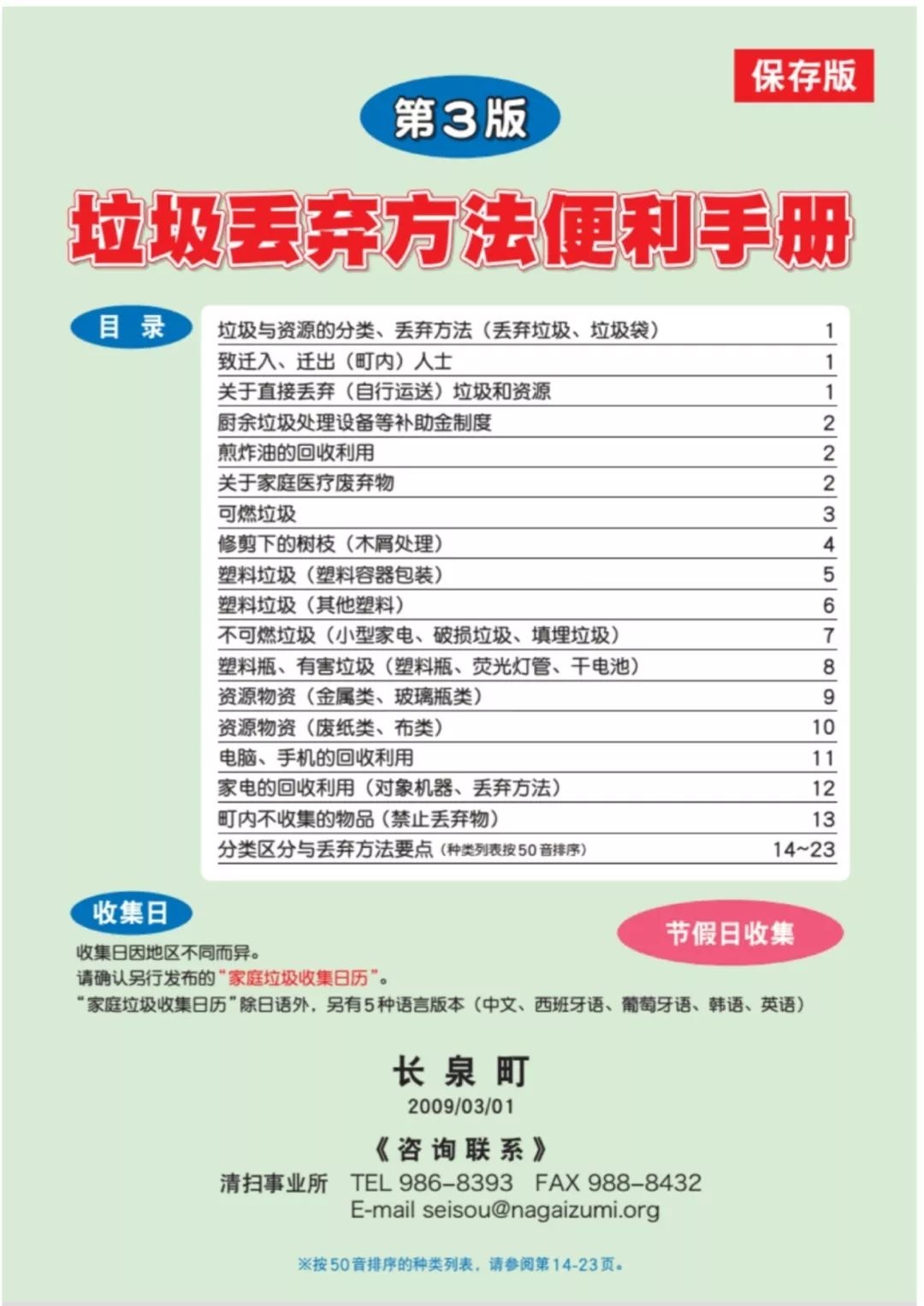好在日本各地会印刷数厚达20余页的分类手册向市民分发。内容细致入微,还用实践反哺理论,至今已更新迭代至第3版。可谓一本在手,分类不愁。