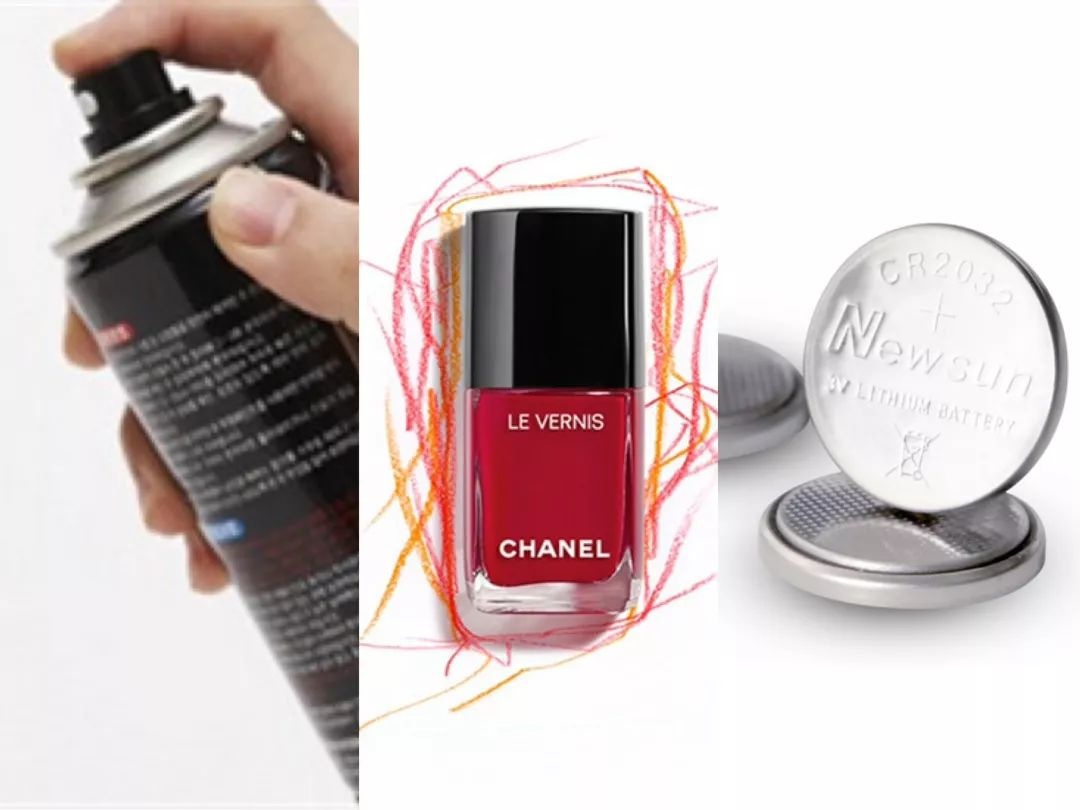 定妆喷雾、杀虫剂、指甲油瓶、充电电池、纽扣电池、锂电池基本都是一口上头、极易升天的有害垃圾。光看文字、运用常识即可轻易分辨。但常用的5号、7号干电池属于干垃圾,因为基本不含有害的汞铅。