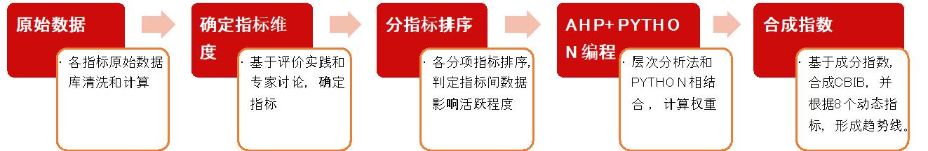 据杨红飞介绍,CBIB的推出历经了两年半的构建、修正与拟合。其算法体系涉及5个步骤,包括原始数据的导入计算、指标维度确定、分项指标排序、权重计算和合成指数。