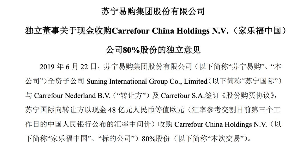 苏宁易购关于收购家乐福中国一事的公告截图