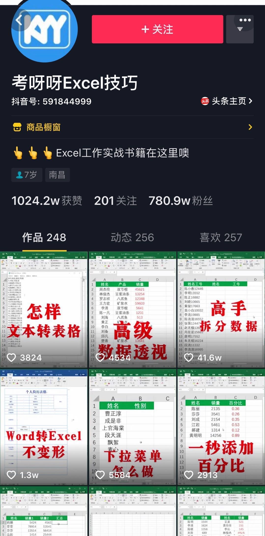 非剧情类的视频大多在视频开头讲明知识要点,诸如“今天教大家一个XX技巧”等开场白。以「考呀呀Excel技巧」为例,一个视频对应一个Excel功能。此类视频更注重实战和质量,但同时也更枯燥。