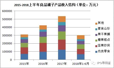 2015-2017年,良品铺子实现销售额分别为31亿元、42.3亿元和53.7亿元,达到年均增速36.6%;2018上半年即接近2015年全年的销售额,为30.1亿元。