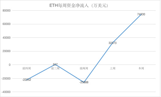 ETH 本周全网资金净流入超过 7.4 亿美元。目前,从资金流入趋势来看,短期内资金流入已经到达极限,资金流入将放缓,价格回调,但谨慎做空。