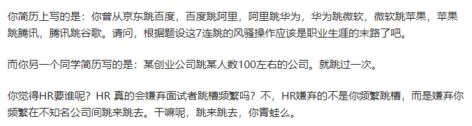 前几天刷知乎刷到一个挺有意思的话题,这个问题是「HR真的会嫌弃面试者跳槽频繁么?」