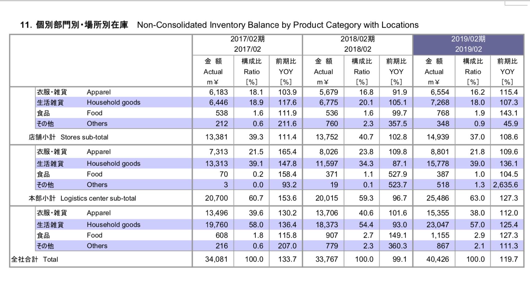 2、单项管理:我们可以从无印良品2019年2月发布的2018年年报看这家公司对库存的管理情况——每一个单项库存金额的管理。