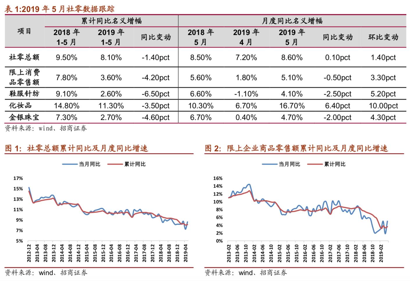 招商证券今年6月17日发布的一组数据就提到。2019年5月社会消费品零售总额增速还在不断放缓。消费者在当下环境下,消费底气不够充足。