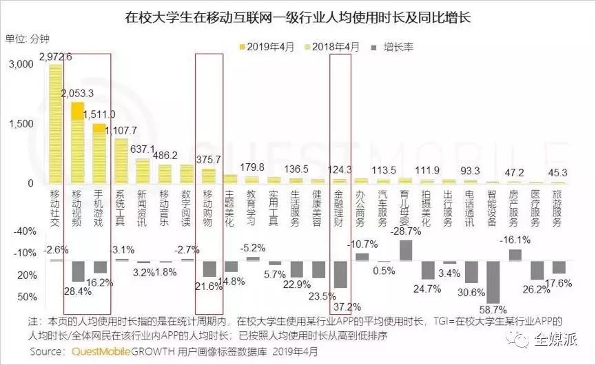 撤退的趋势同样也存在于国内。QuestMobile今年六月发布的中国在校大学生洞察报告显示,从去年到今年,在泛娱乐平台使用时长大幅上升的同时,移动社交人均使用时长下降了2.6%。