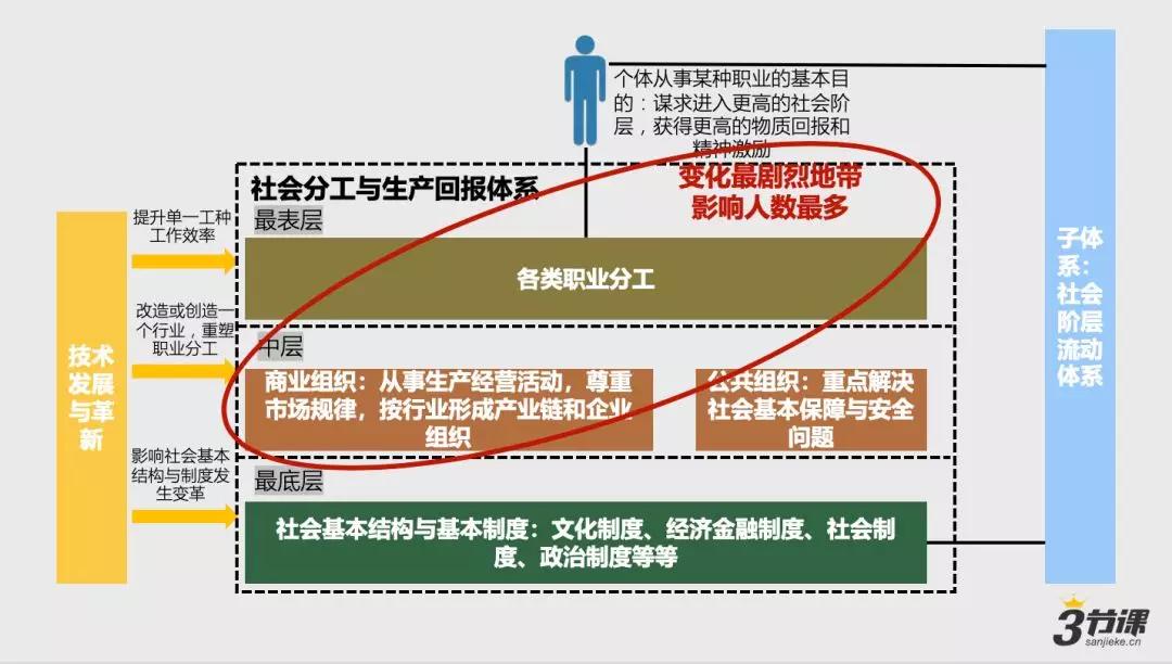 但,一个社会分工和生产回报体系中,到底会出现哪些“职业”,哪些职业可能会发生更替或消亡,却是由三层结构来决定的。