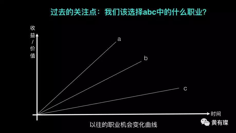 在上一个时代的职业环境中,各种职业的发展上升曲线往往是线性的和稳定的,这意味着,很多时候,在职业生涯中,选择从事什么样的职业,往往就决定了你能走到什么样的高度。就像是,曾经你在大学毕业后,到底是去选择做一名教师,还是一名医生,还是一名工程师或者银行家,往往就注定了你在此后10年20年的收入、社会地位等。