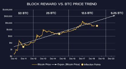 据投资机构 PanteraCapital 分析,在 2012 年和 2016 年比特币奖励减半前的几个月里,比特币的价格稳步上涨,这在一定程度上是有周期性的,平均周期为 348 天。这意味着,比特币在 2019 年 6 月 10 日迎来新一轮行情。