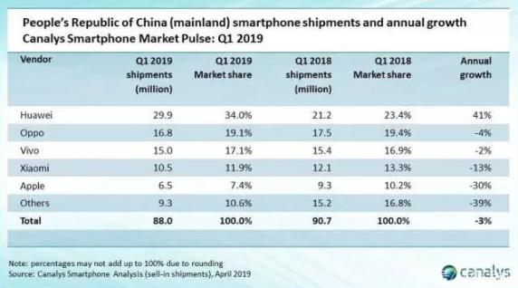 从数据端也可以发现,在头部品牌的“机海”战术下,整个市场的资源正继续在向头部品牌方聚集。根据第三方数据调研机构Canalys公布的“中国市场第一季度智能手机出货量”数据显示,华米OV以及苹果五家企业继续霸占了国内智能手机一季度出货量的前五位。