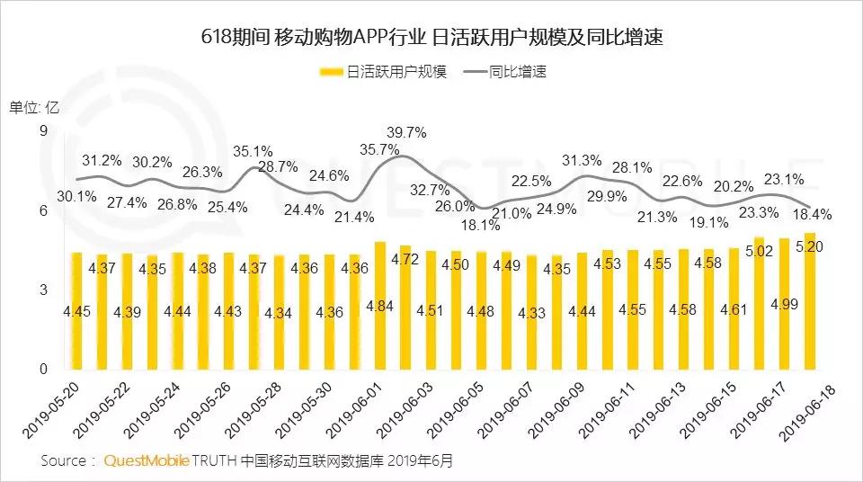 京东则凭借秒杀日及优势品类的活动日,促成流量多次爆发,6月18日当天DAU接近9千万,较5月20日增长90%;