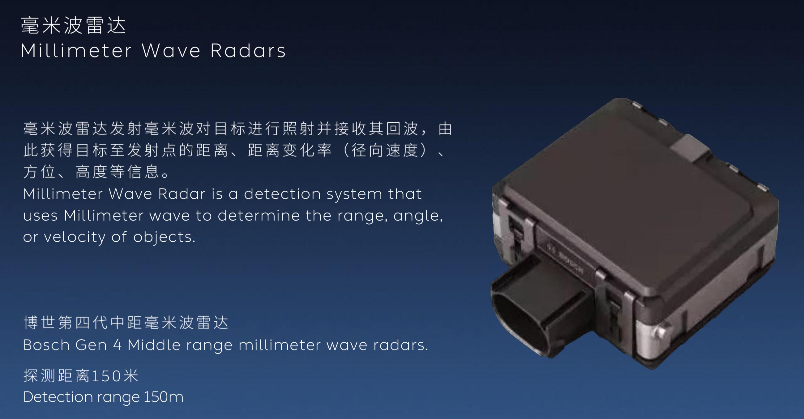 蔚来汽车在L2自动驾驶的解决方案中整车传感器、雷达、摄像头配置如下: