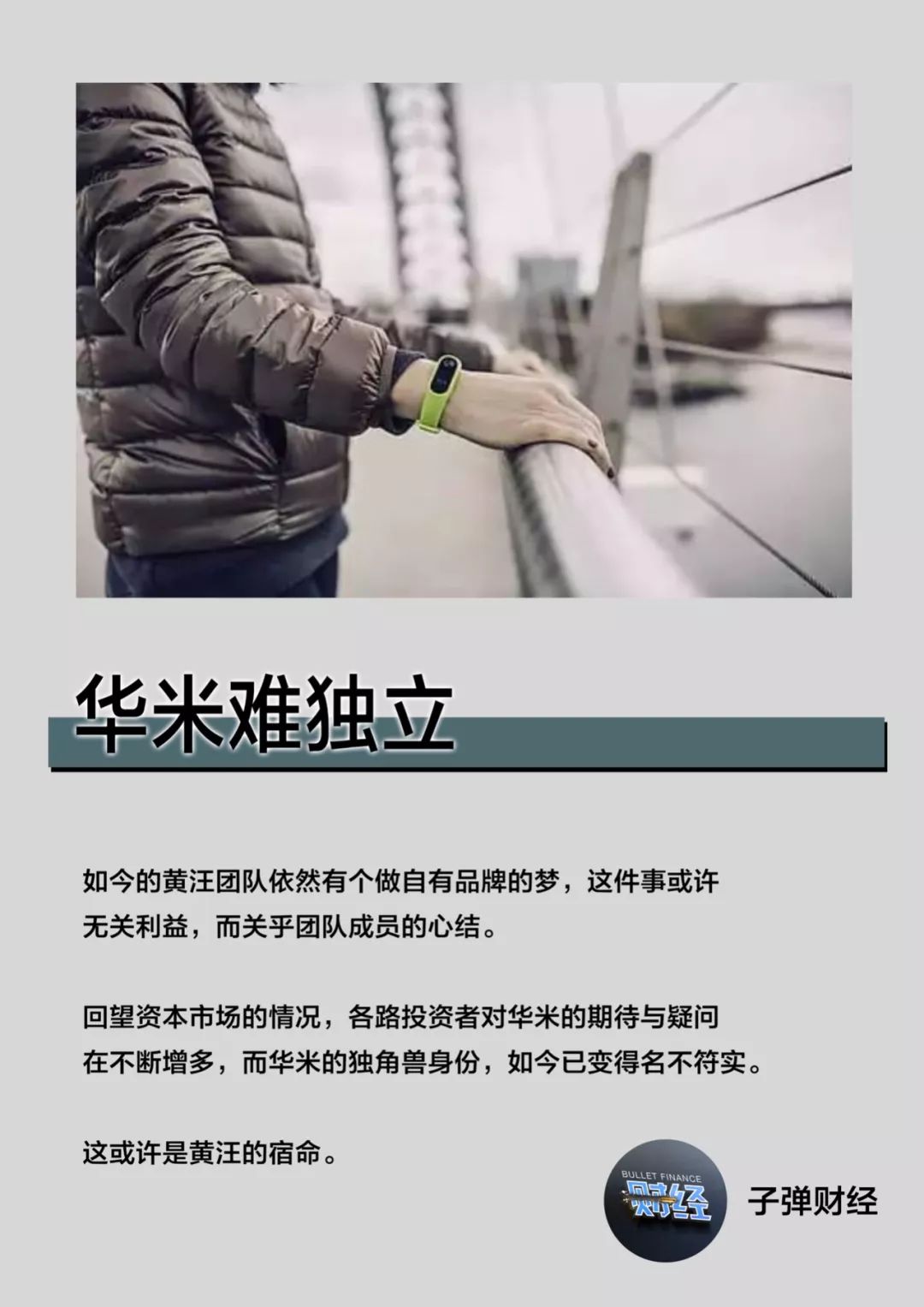 编者按:本文来自微信公众号“子弹财经”(ID:ibushouzhi),作者:克虏伯、杨博丞,36氪经授权发布。(原标题:华米难独立)