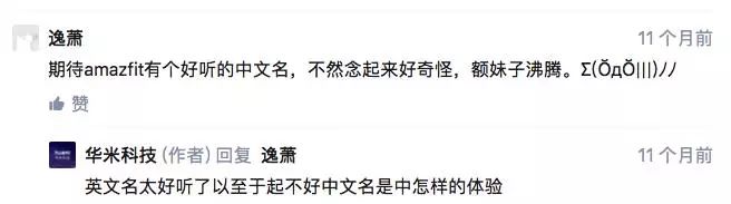 2016年11月,华米公司曾经针对AMAZFIT品牌的中文名在微博上发起过有奖征集,收到超过800多个投稿,但直到2018年7月份,华米的官方账号还在知乎上“抖机灵”的说:一个名叫make up forever的化妆品品牌名翻译成了非常有意境的浮生若梦,而AMAZFIT则没有中文名。