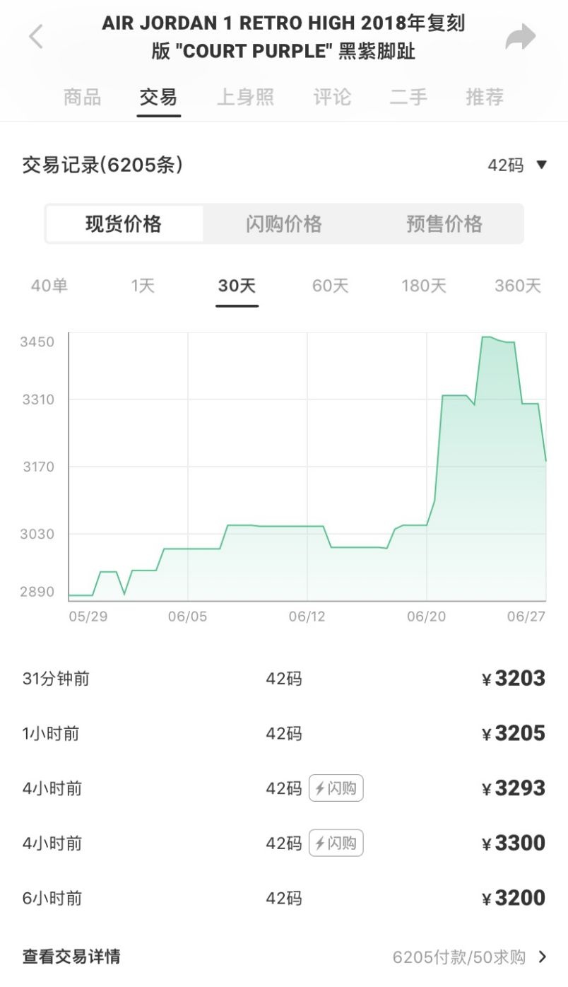 而在鞋市,无论是品牌方合作的营销、市场自发抢购明星同款还是二级市场卖家炒货,这里面,都藏着难以想象的市场价格涨幅。在二级市场的购鞋平台,这些数据就像股市,有起伏曲线和对比作为参考。