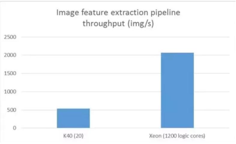 K40和Xeon在图片特征提取流水线的吞吐量比较