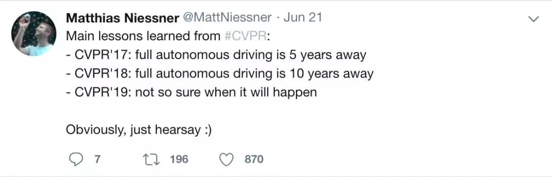 6月20日,为期一周的计算机视觉与模式识别大会(Conference on Computer Vision and Pattern Recognition,缩写为CVPR)在椰林树影的加州长滩落幕。会后第一天,慕尼黑工业大学的视觉计算与人工智能教授Matthias Niessner发布了这么一条推特。