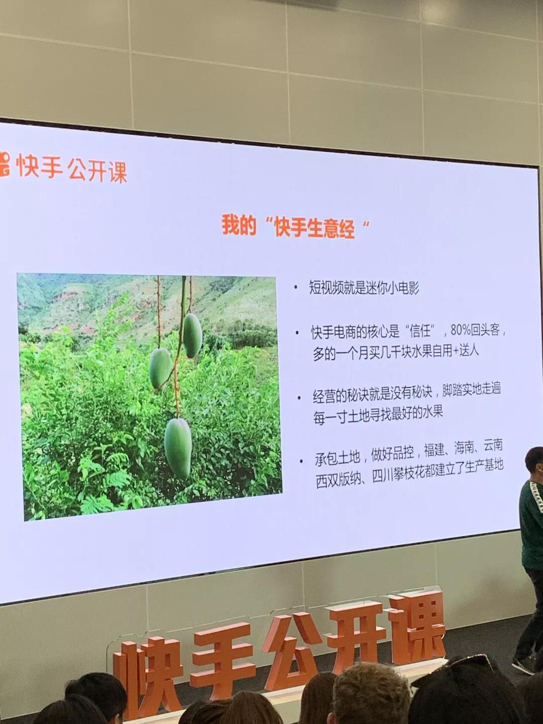 在申俊山看来,快手电商的核心是信任,选品非常重要。罗拉快跑账号粉丝回购率超过了80%。为了做好品控,申俊山自己还在福建、海南、云南、西双版纳、四川攀枝花等地都建立了生产基地,并通过与农户合作,提供果苗,回收果实来保证水果品质。