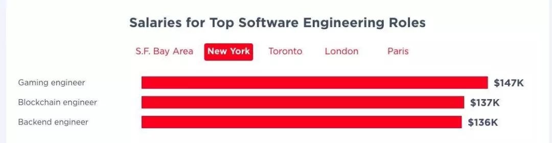 招聘开发人才是公司的业务优先事项,但不得不说,并非所有岗位都是平等的。随着初创公司引入应用技术的新方法,大型企业继续寻求数字化转型,所有希望聘请顶尖技术人才的公司都需要不断发展招聘需求。那么,在不同的国家或地区,哪一类顶级软件工程师最抢手,薪资更高?以下是报告中提供的参考数据: