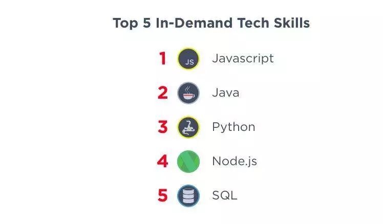 科技人才越来越成为创新型企业的战略基础性资源,对于求职者来说,具备哪些技能在当今竞争激烈的招聘市场中占有一席之地至关重要。报告中总结出了雇主们最看中也是技术从业者必备的五大技术技能,分别是 Javascript、Java、Python、Node.js 以及 SQL 。