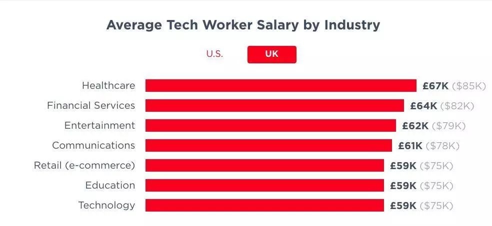 哪些行业的公司为技术从业者提供最具竞争力的工资?(以美国和英国为例)