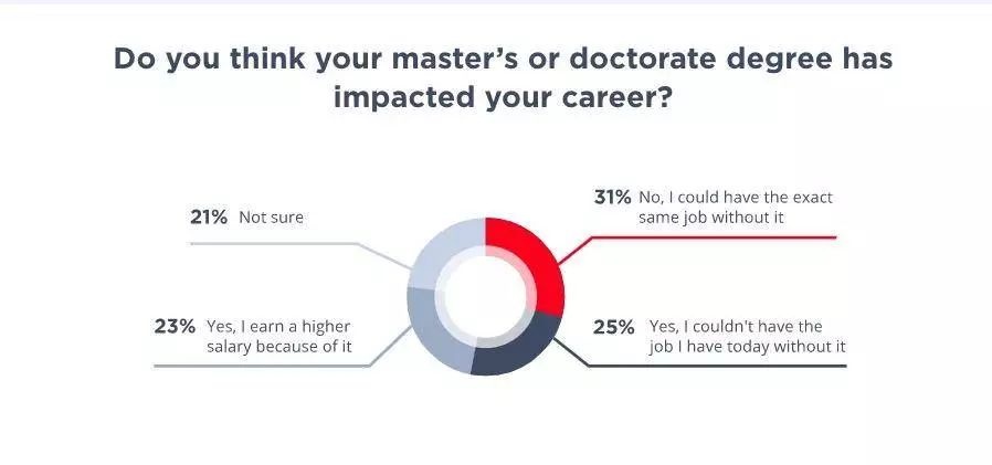 仅有 23% 的计算机科学相关专业硕士 / 博士表示高学历为其带来高薪;