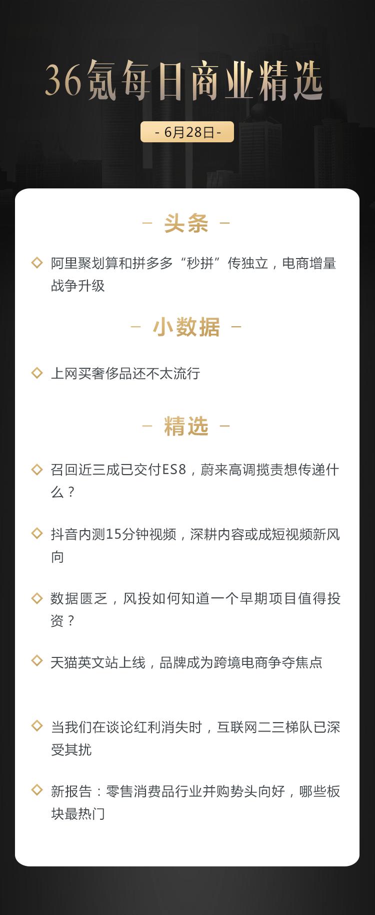 本文来自36氪付费栏目《36氪每日商业精选》——6月28日