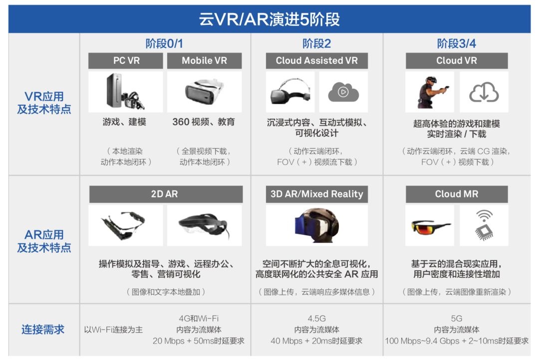 VR要实现完美的虚拟现实体验,时延要低于20ms才能有效缓解眩晕感,而4G时延大约100ms。5G所具有毫秒级的端到端时延的特性可以解决这个难题。除时延外,VR设备需要对画面进行精细绘制,头盔与主机间需要传输大量数据。