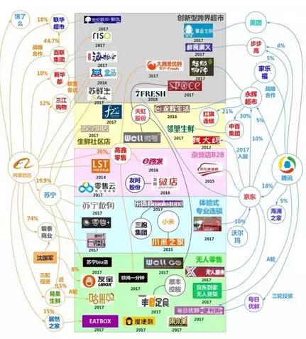 这场由互联网公司、头部零售企业发起的2017年零售行业的多起并购,展现了一个不一样的中国零售业图景:外资势微、台资卖身、内资崛起,以阿里、腾讯为首的互联网企业已经深度介入传统零售,并通过不同的路径加速对行业的重塑。