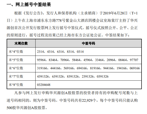 36氪获悉,科创板第一股华兴源创中签号出炉,中签号码共22929个。