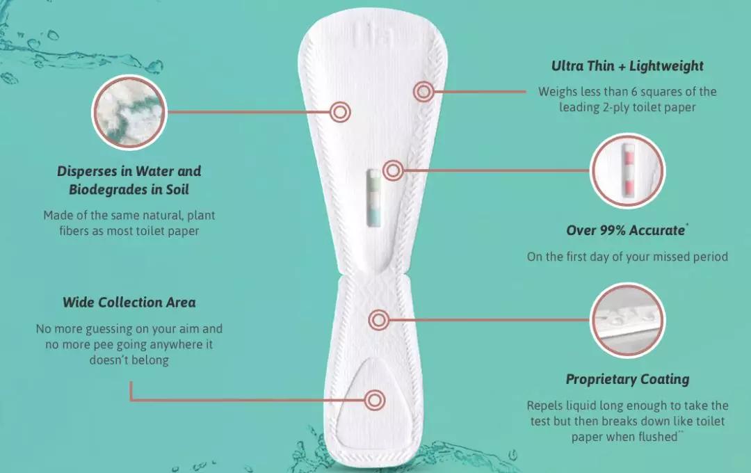 Lia 则创造了全球第一款可冲洗的验孕工具。该测试套件由环保的纸质材料制成,不含塑料成分,可折叠,可冲洗且易于携带。除了很薄之外,验孕的准确性高达 99 %,这款产品还被《时代》杂志 2018 年评为年度 50 大发明之一。