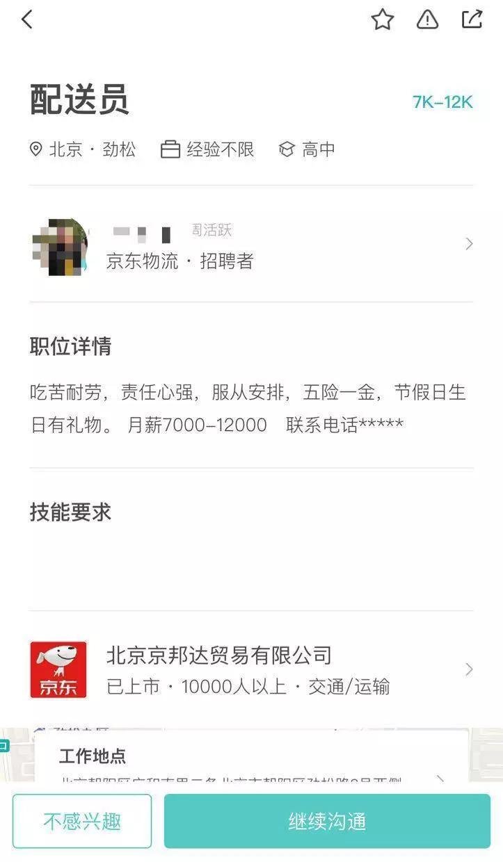 目前京东在boss直聘上仍在大量招人,标注薪资优厚,轻松上万,此前有消息称京东曾在第二季度扩招5000人备战618。