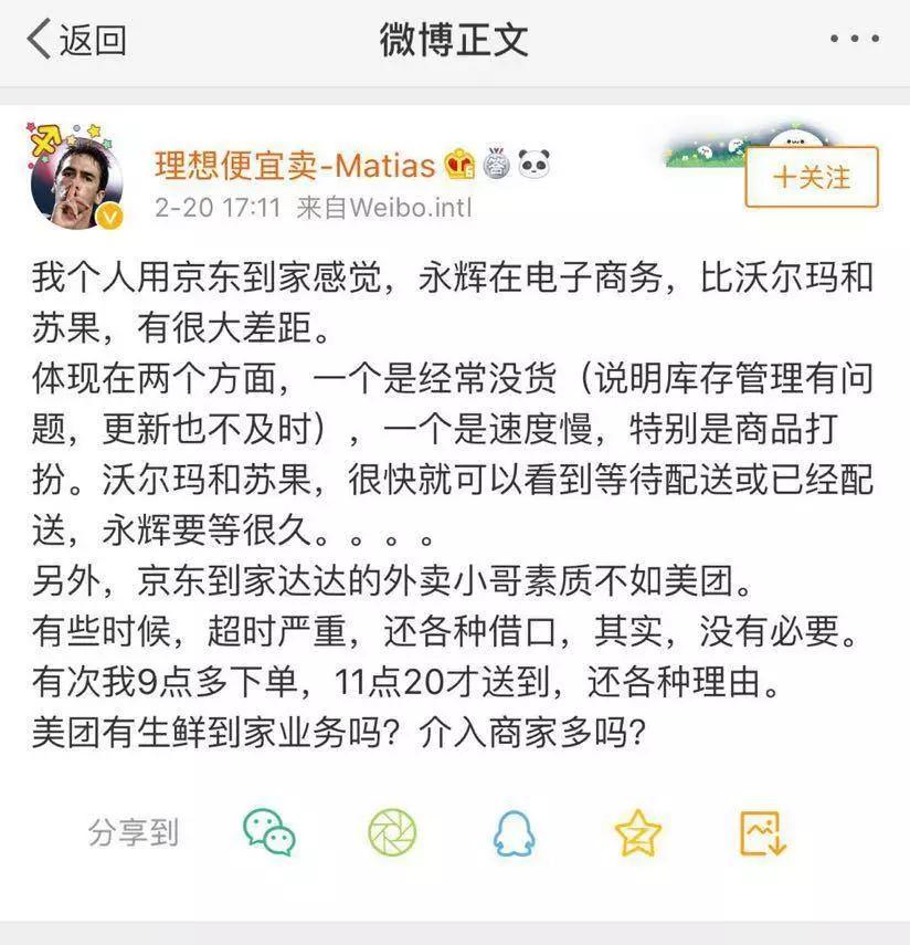 有人表示京东现在这么慢,已经不会再续费会员;还有表示在等食材下锅,早知如此不如改用盒马鲜生或每日优鲜;甚至一些主妇用户而言”快递小哥代表着一种生活秩序”,既然无法保证,那么自然会很快寻求其他替代性的解决方案。