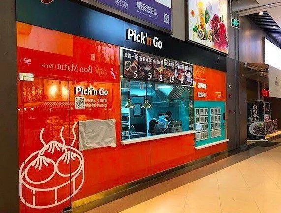 据了解,Pick’n go由人工柜台和自提货柜组成,下单和收银主要靠盒马APP完成,操作间则以人工为主。自提柜提供的产品以早餐饮品、小食炸物为主,菜单包括“波霸一号、五谷豆浆、小谷煎饼、风味咖啡”等。