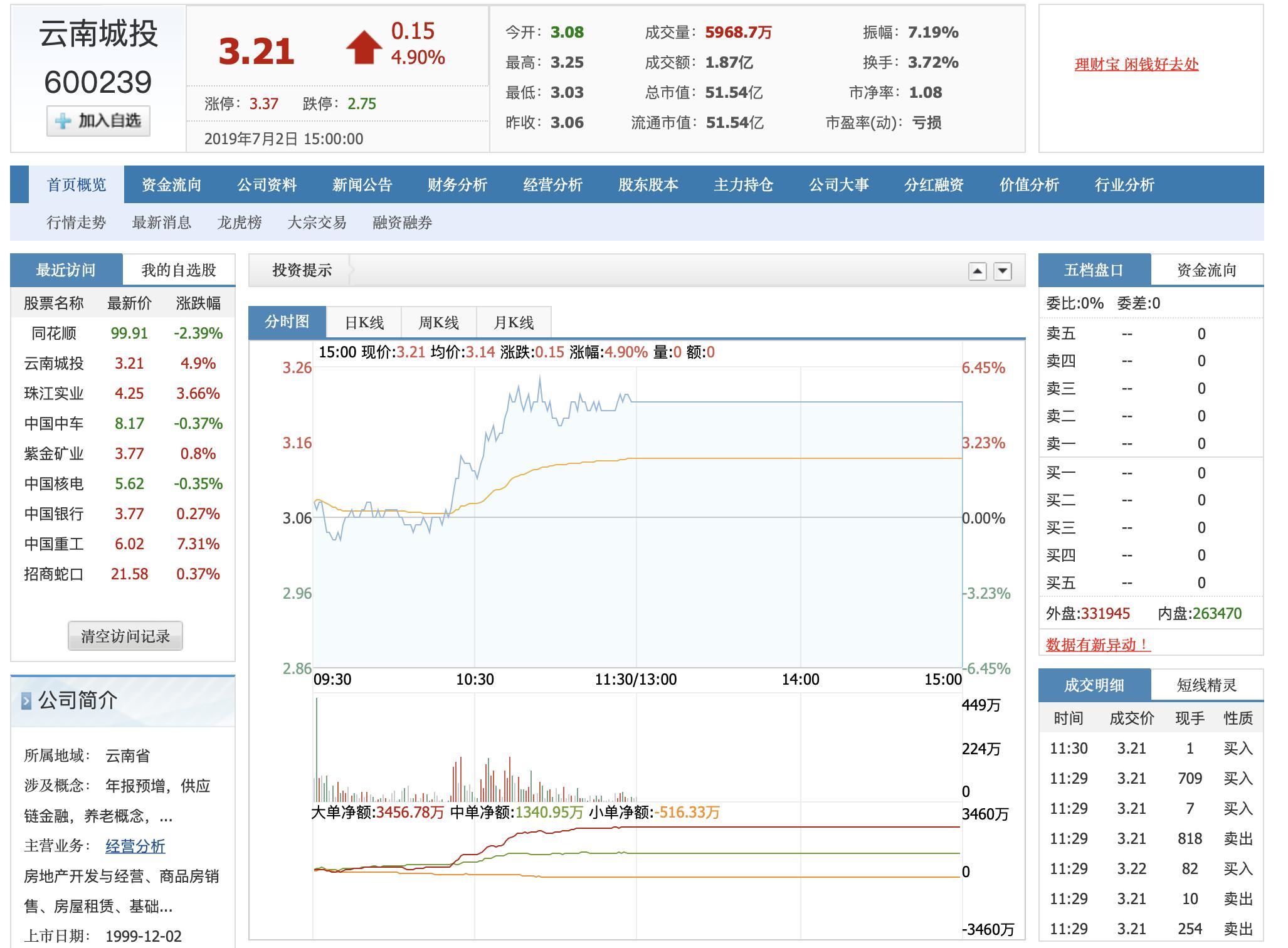 7月2日下午开盘,云南城投(600239.SH)出现紧急停牌,报价3.21元每股,早盘股价涨幅近5%。但截至发稿时,云南城投暂未披露相关停牌公告。