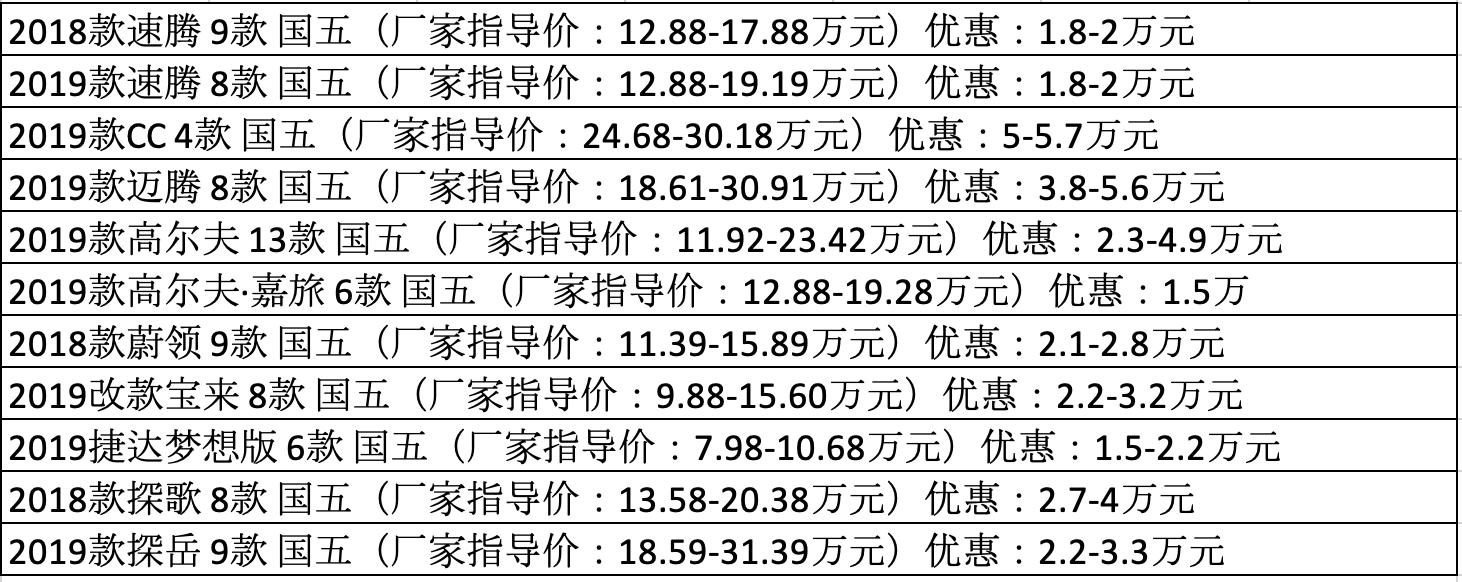 一汽-大众VW品牌“国五”折扣,36氪Auto根据公开资料整理