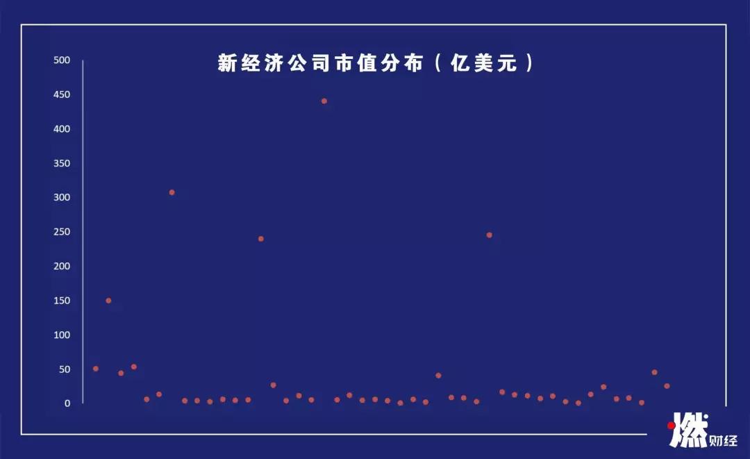 大部分新经济公司市值在50亿美元以下,制图 / 燃财经