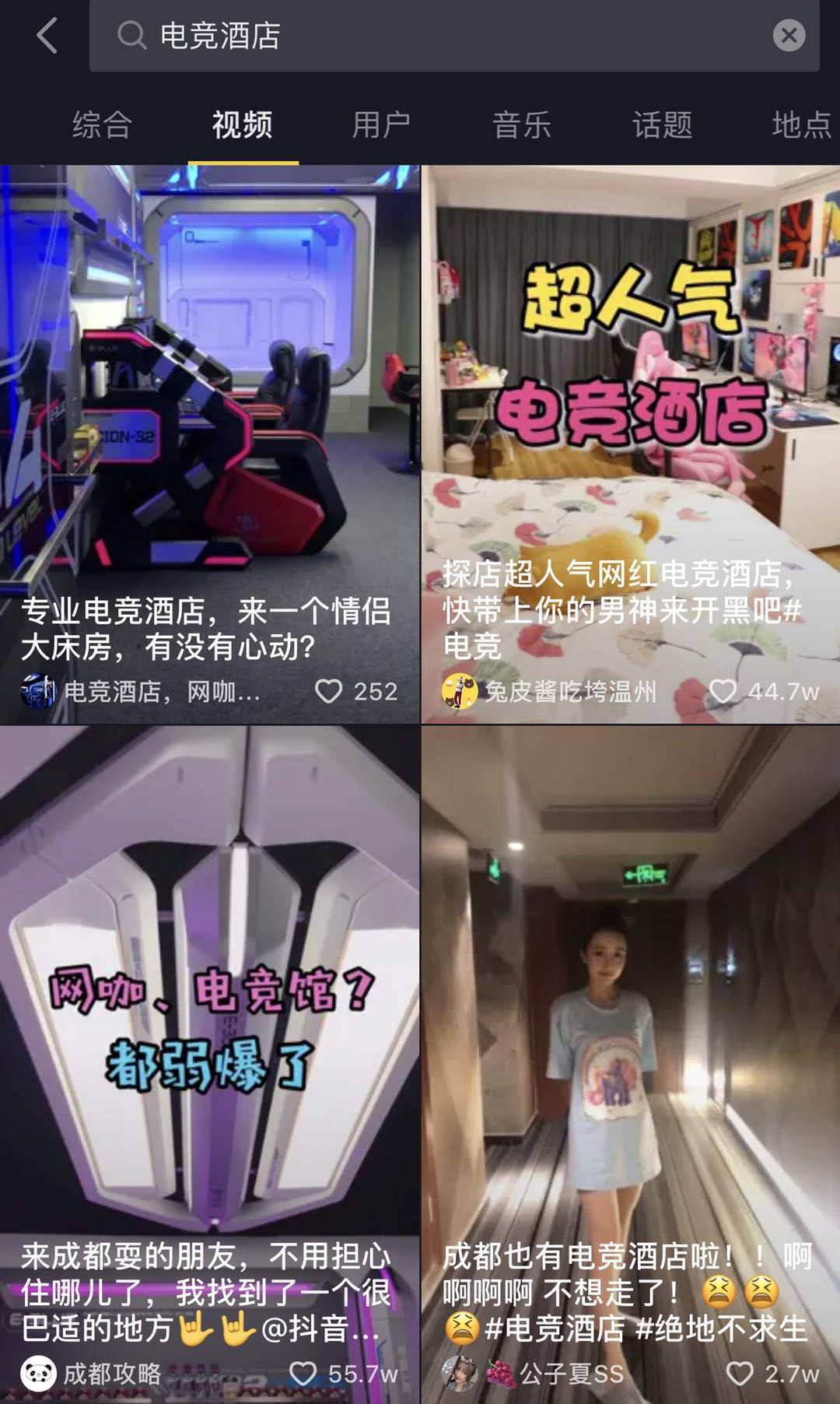 作为话题性较强的新生事物,电竞酒店很容易获得社交媒体的关注,在抖音上,电竞酒店相关视频大都有超过四五十万播放量。只是在情怀和噱头营销上先声夺人之后,如何平衡游戏性和入住体验,加强管控、避免“电竞陪玩”等可能衍生的灰色空间,依靠设施、氛围、口碑和服务维系重度用户,并扩大泛用户群体,是电竞酒店下一步成长壮大的关键。如同网咖行业的洗牌一样,优胜劣汰,金字塔尖者存,最终一些百元左右的低端电竞公寓或将遭到淘汰,中高端电竞酒店会吸引更多注重私密性和气氛、愿意消费升级的用户。