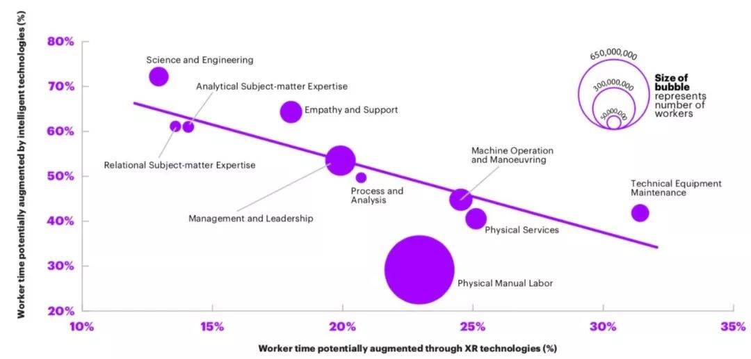 体力劳动、设备维护等人工智能助益较少的领域,生产力提高可以通过AR技术很好地实现