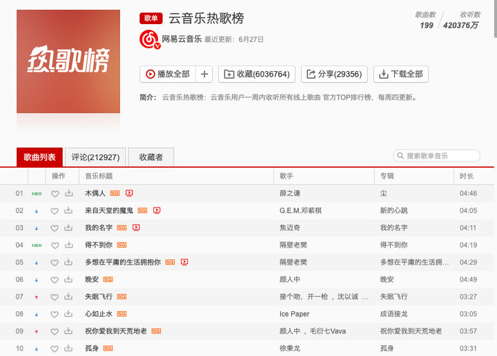 其中薛之谦的《木偶人》、焦迈奇的《我的名字》、陈雪凝《你的酒馆对我打了烊》更同时在登上了两家以上音乐平台的热歌榜前 10 ,而这几首歌流行的路径基本一致: