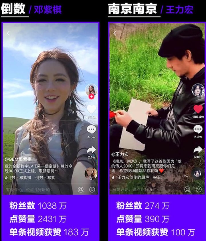 除了刚出道的新人,即便是原本就有一定人气的歌手也把抖音作为新的宣发阵地,邓紫棋、胡彦斌、薛之谦、吴亦凡、鹿晗等歌手都开始在抖音首发或宣传新歌。