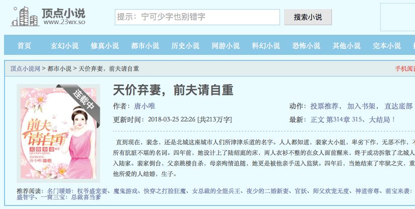 《天价弃妻:前夫请自重》每晚19点,两集联播。“一口气刷了165集,一分钟一集,仨小时没了;霸道总裁也有当暖男的时候;女主就应该霸气,既然保护不了她,就别再来招惹她了……”
