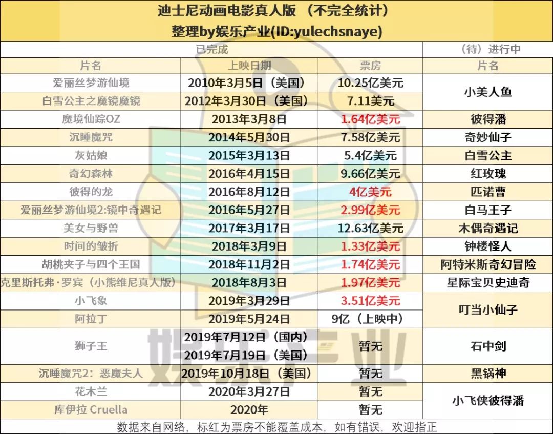 从《沉睡魔咒》到《阿拉丁》到《花木兰》,粗略统计,目前已经上映18部,等待上映4部以及计划中的大约有14部。